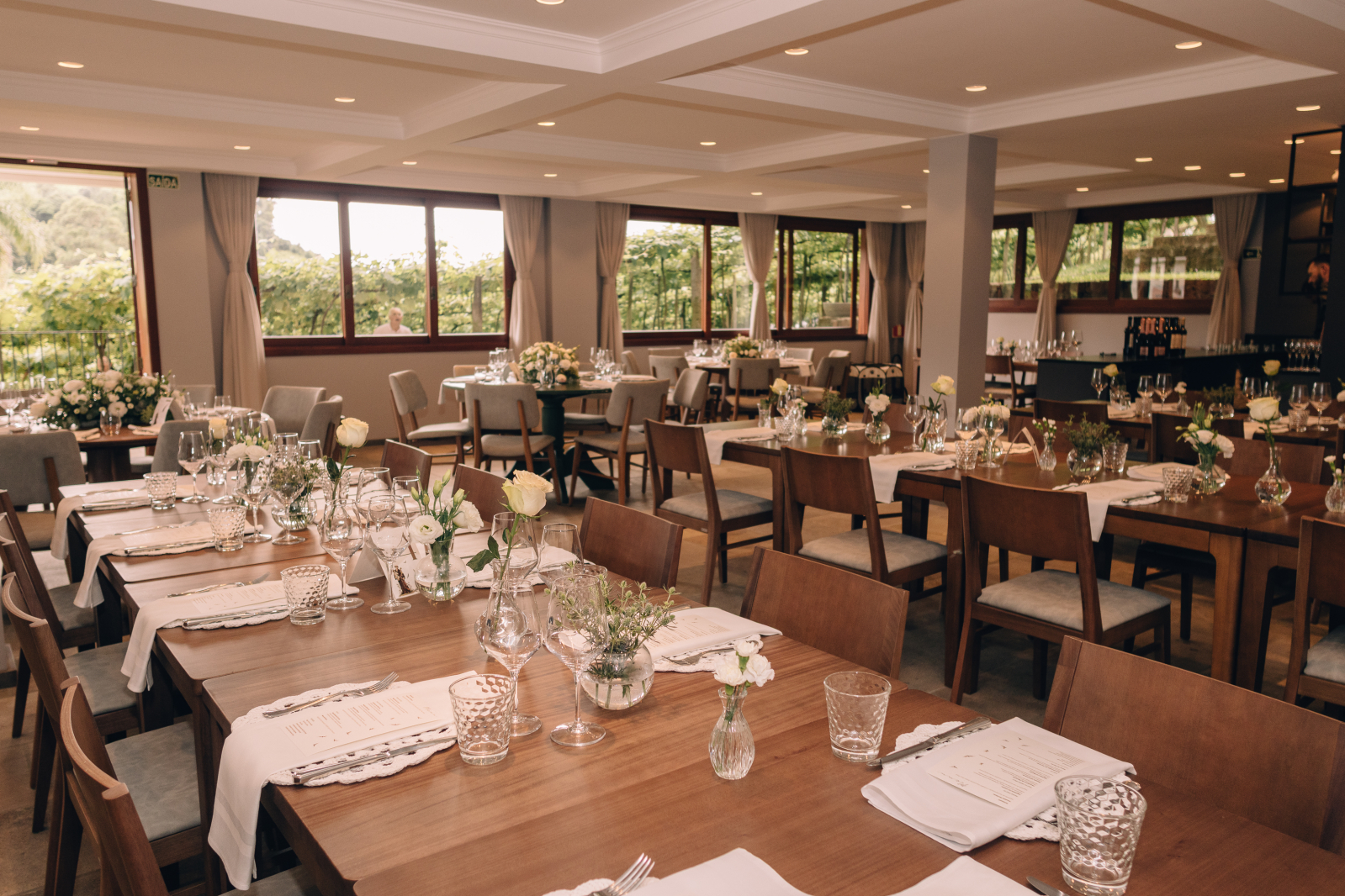 - Ambientes Elegantes: Espaços que se adaptam às suas necessidades, com a beleza dos vinhedos ao fundo.