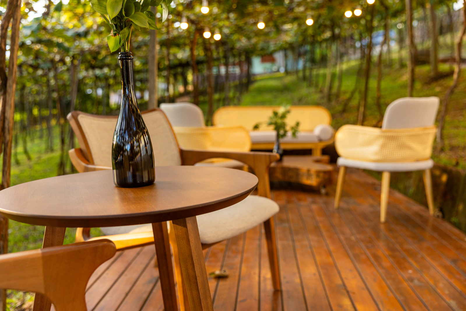 Ambiente intimista, cuidadosamente decorado com elegância, aconchego e o charme único da vinícola